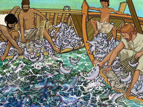 눅 5:7 이에 다른 배에 있는 동무를 손짓하여 와서 도와 달라 하니 저희가 와서 두 배에 채우매 잠기게 되었더라